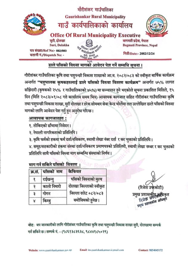 डाले घाँसको बिरुवा माग गर्ने सम्बन्धी सूचना ।