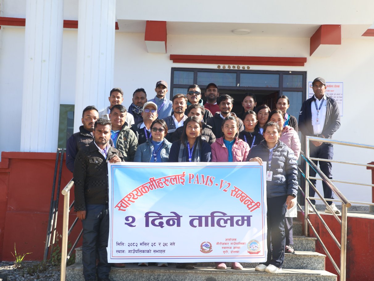 गौरीशंकर गाउँपालिकाको स्वास्थ्य शाखाद्वारा स्वास्थ्यकर्मीहरुलाई आयोजना गरिएको २ दिने PAMS-V2 सम्बन्धि तालिम मिति २०८२ मंसिर २८ र २९ गते पालिकाको सभाहलमा सफलतापूर्वक सम्पन्न भयो।