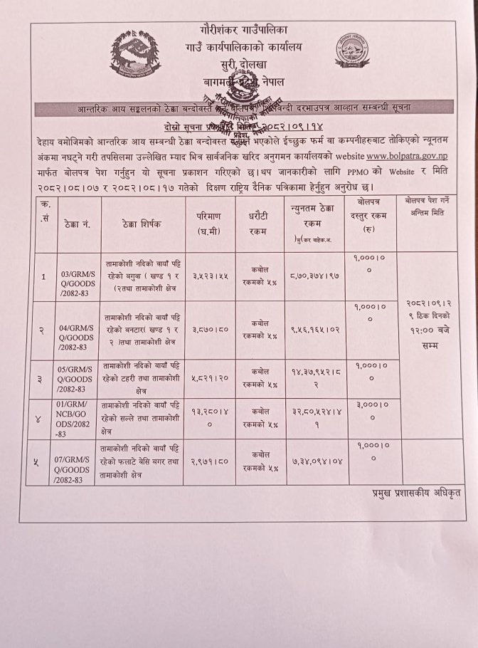 आन्तरिक आय संकलनको बन्दोवस्त शिलबन्दी दरभाउपत्र आव्हान सम्बन्धि सूचना ।