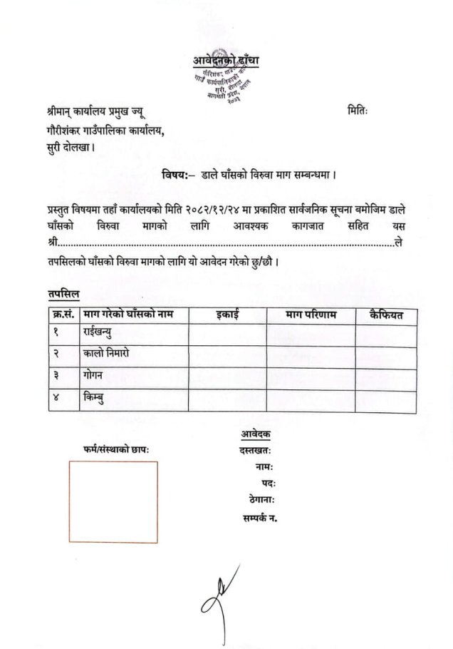 डाले घाँसको बिरुवा माग गर्ने सम्बन्धी सूचना ।